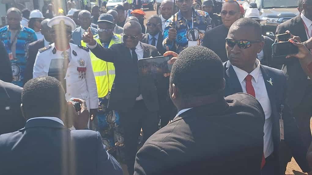 The Prime Minister Head of Government his excellency Chief Doctor Joseph DION NGUTE was recieved at the moungo bridge by the governor of the Southwest region Bernard OKALIA BILAI, the SDO of fako division Engelbert VIANG MEKALA the DO’s and political elites and traditional rulers of fako division